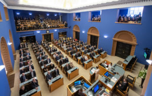 Tütarlastekooril Ellerhein oli au esineda neljapäeval, 4. apillil 2019 kell 11 Eesti Vabariigi Riigikogu XIV koosseisu avaistungil.