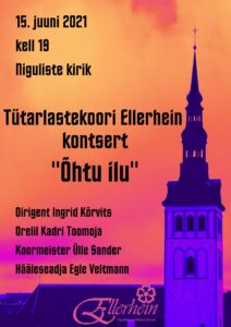Tallinna Huvikeskus Kullo tütarlastekoori Ellerhein kontsert “Õhtu ilu” leidis aset 15. juunil kell 19 Niguliste kirikus. Meil on suur rõõm, et saime selle kontserdiga panna väärika punkti oma 2020/2021 hooajale.
