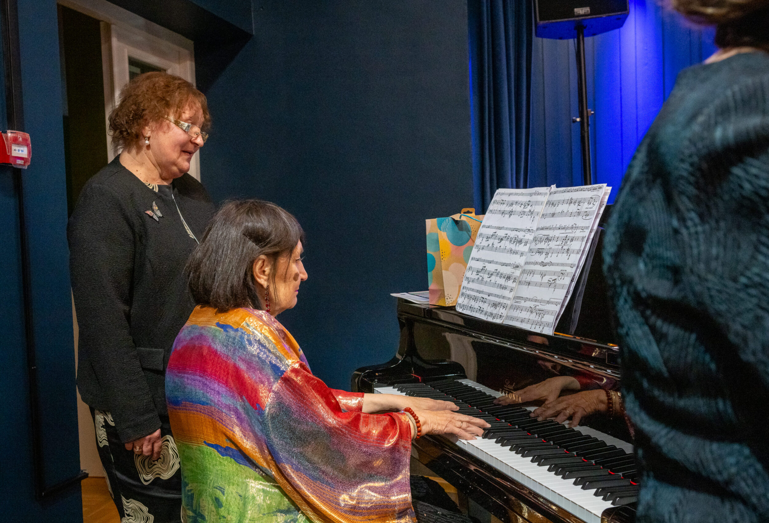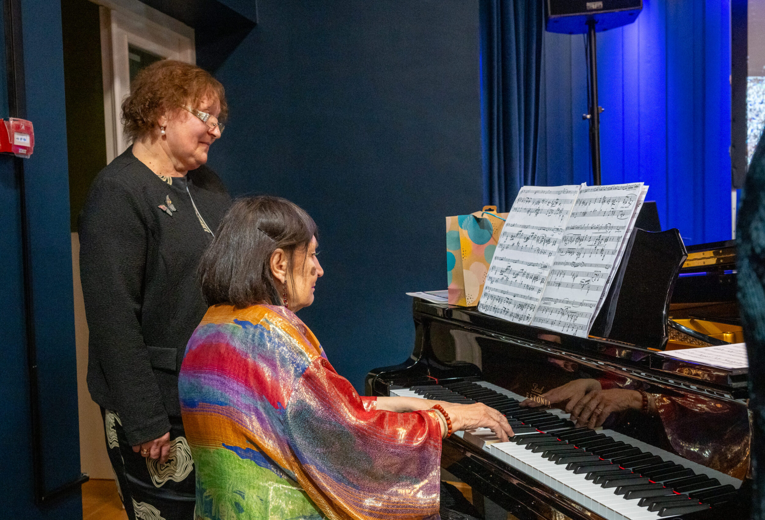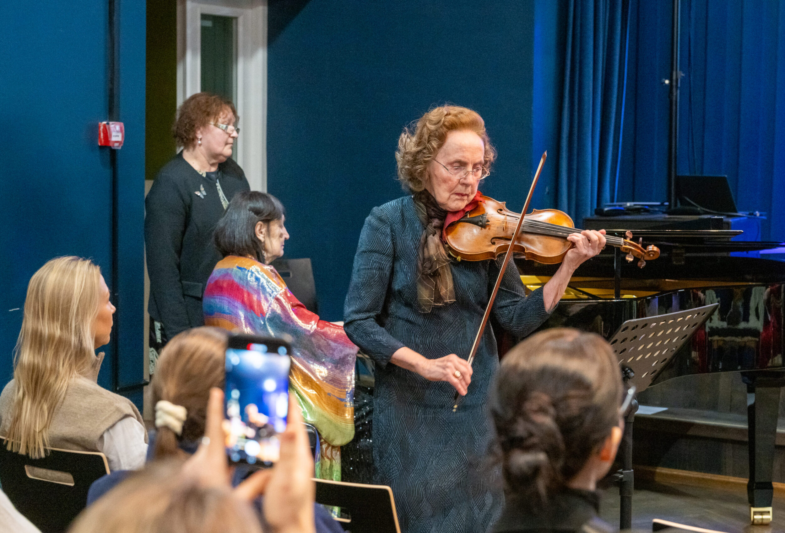 Õhtut juhtis Ellerheina vilistlane Anne Hiio, musitseerisid vilistlased Marta Paklar ja Kadri Toomoja ning juubilar ise koos kunagise ansamblipartneri Mare Teearuga. Muuseumi poolt tegi pilte Vahur Lõhmus.